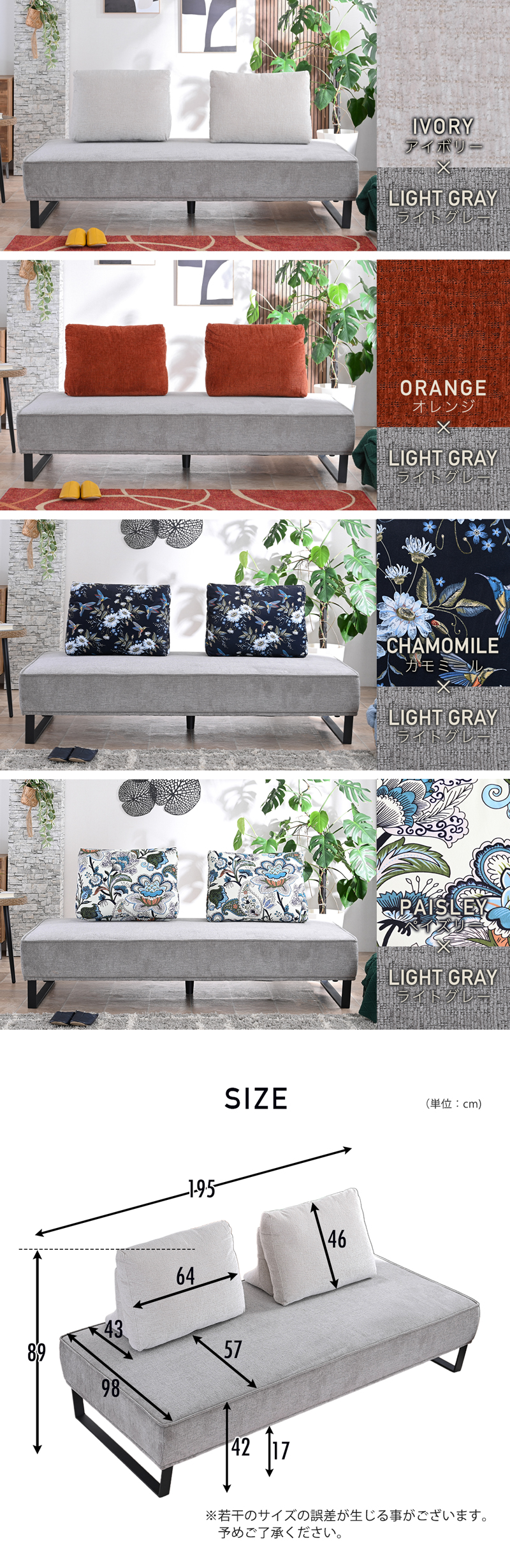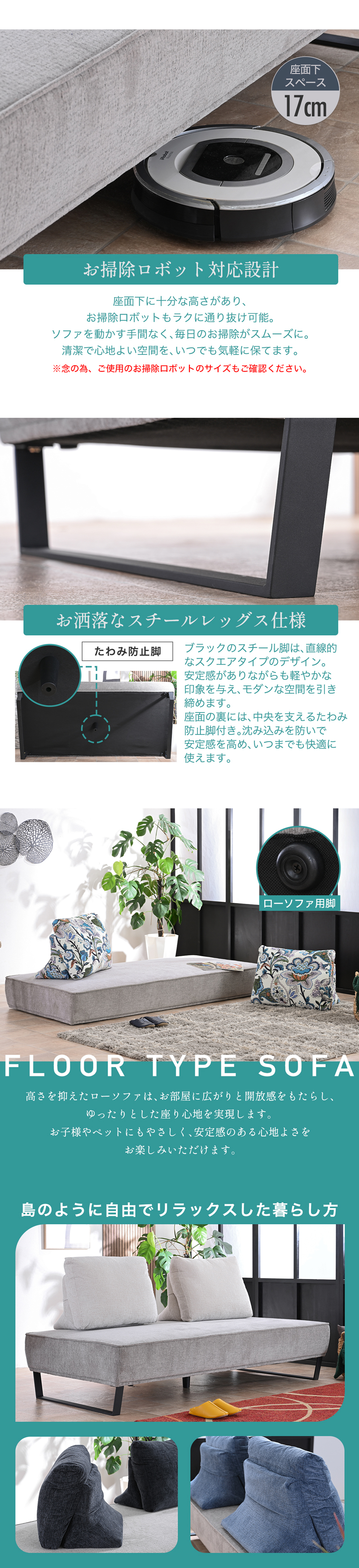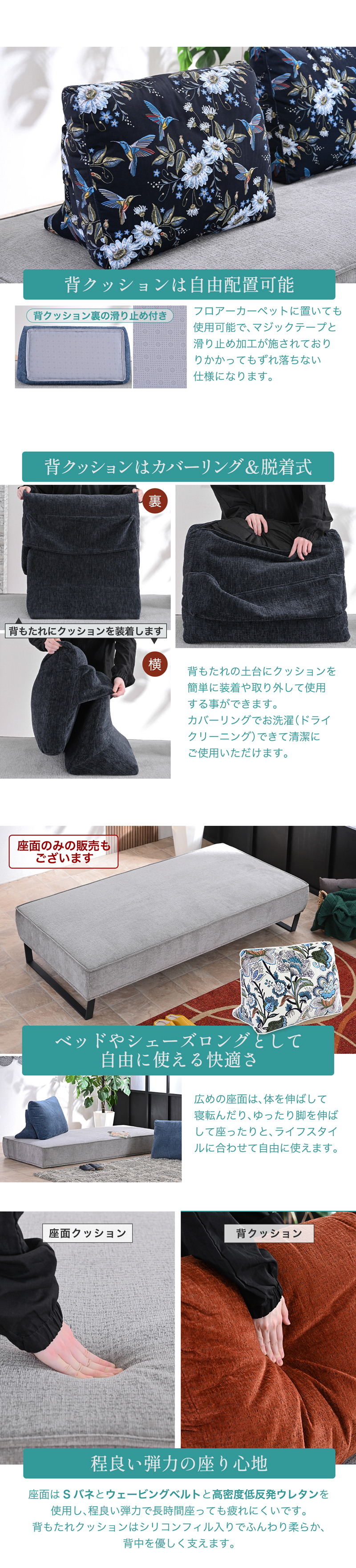 ・背クッションは自由配置可能で、フロアーカーペットに置いてご使用も頂けます。