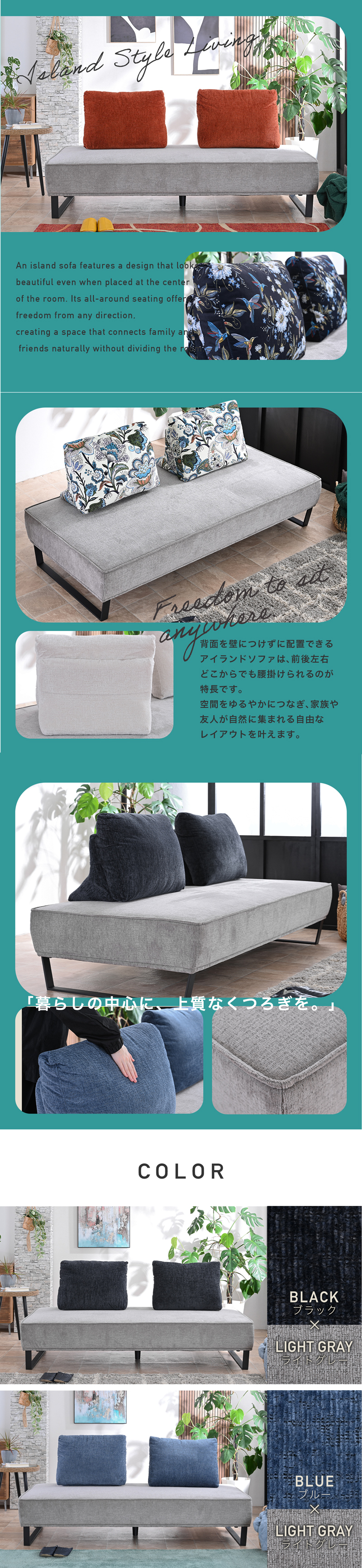 アイランドソファー ソファー ソファ 三人掛けソファー 二人掛けソファー 3P 2P 幅195cm アイランドソファ ローソファー 背クッション st32-9s 玄関渡し