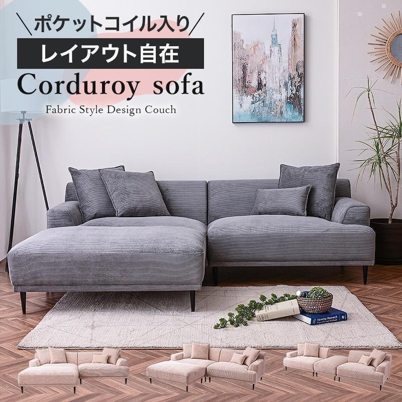 ソファ ソファー カウチソファー ファブリック カウチソファ カウチ コーデュロイ 3人掛け 3人掛けソファ オットマン 3P 大型 カウチ 広い t42-3t