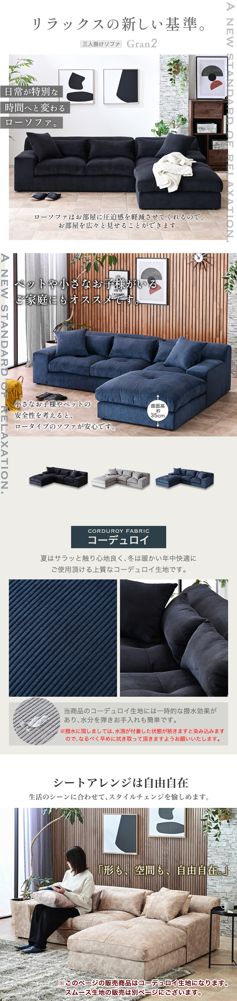 ・当商品のコーデュロイ生地は一時的に撥水効果があります。