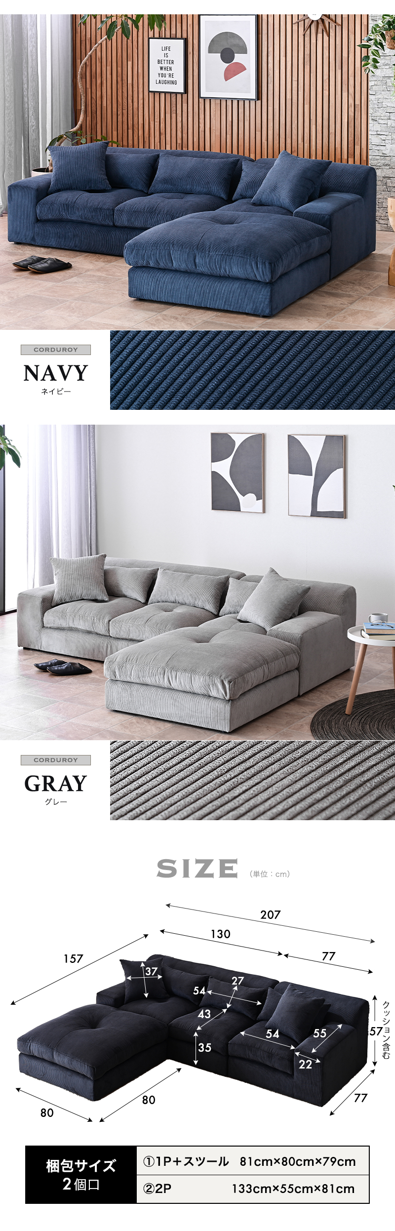 幅207×奥行き157×高さ57cm(クッション含む)『座面高さ35cm』