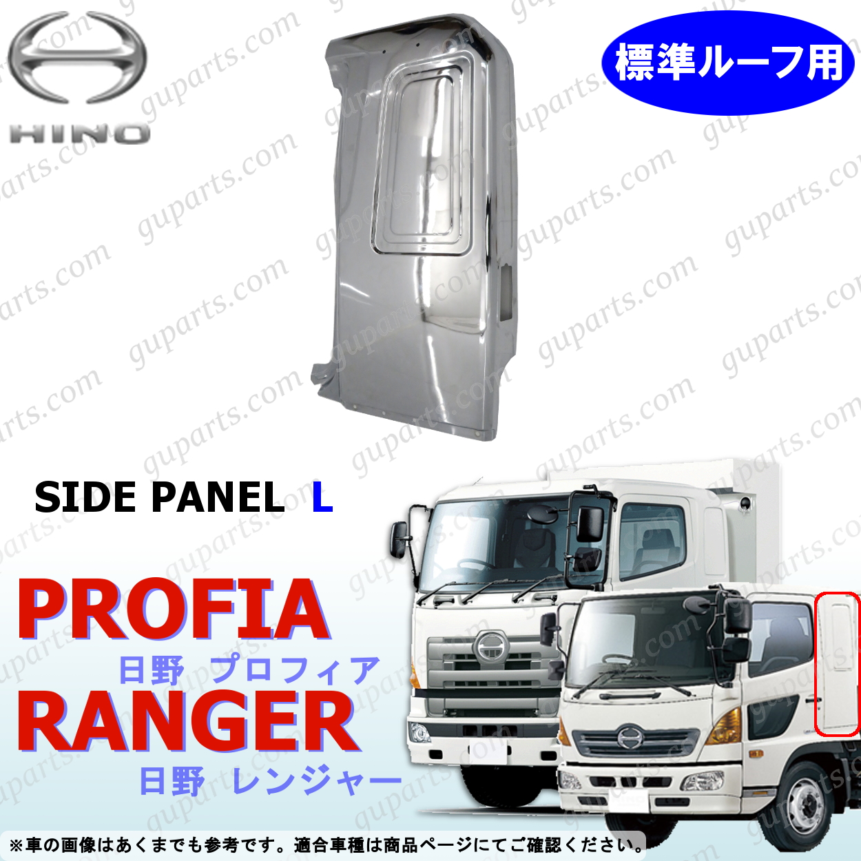 検索キーワード :日野 17レンジャーレンジャープロ 平成14年1月〜平成29年4月 / 平成29年5月〜 17プロフィア グランドプロフィア 平成15年10月〜平成29年4月 / 平成29年5月〜 クロームメッキ 標準ルーフ用 左 サイドパネル かぶせタイプ