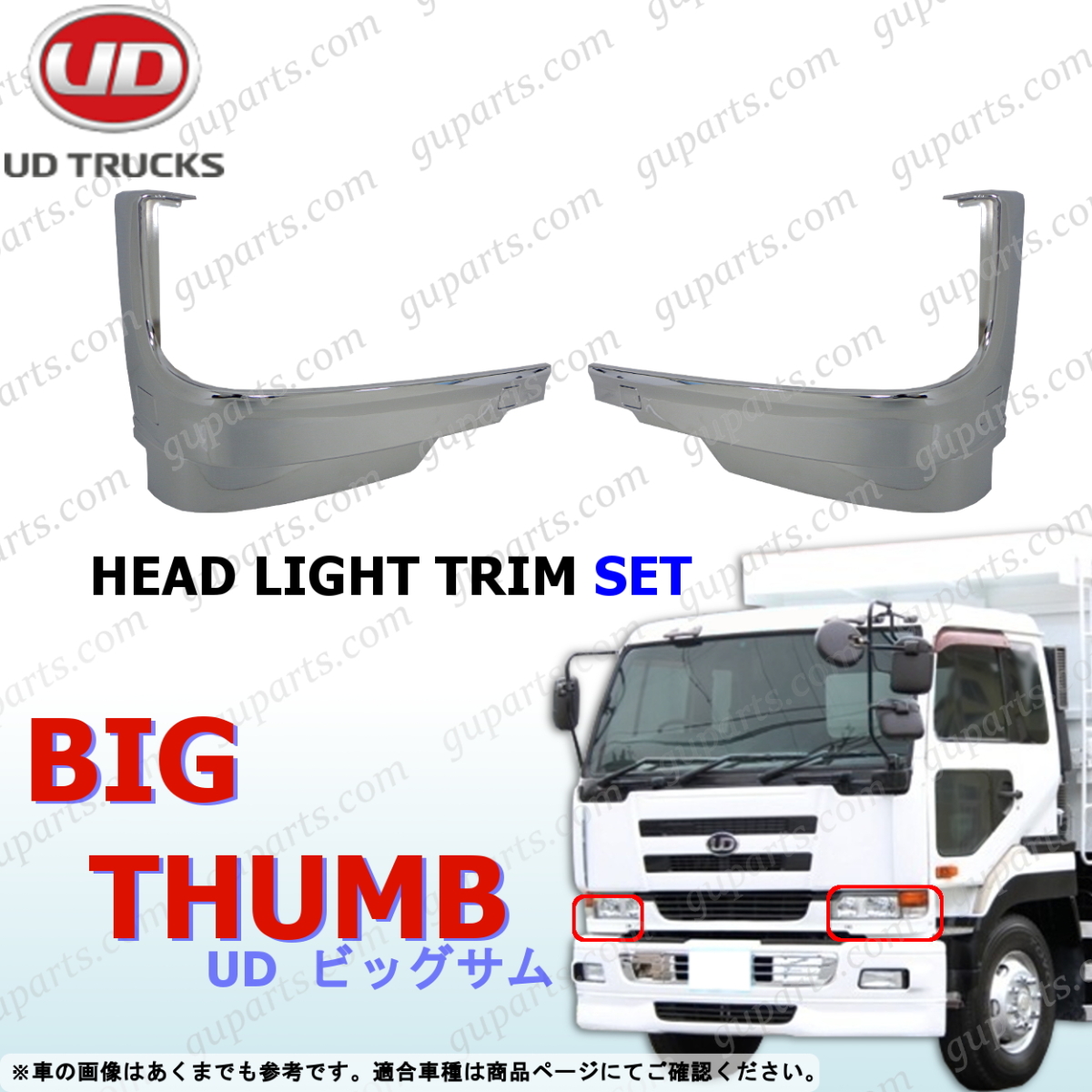 日産 UD ビッグサム 左右 ヘッド ライト トリム クローム メッキ 後期 H12〜H16 CD CG CK CV CW CX GK GW