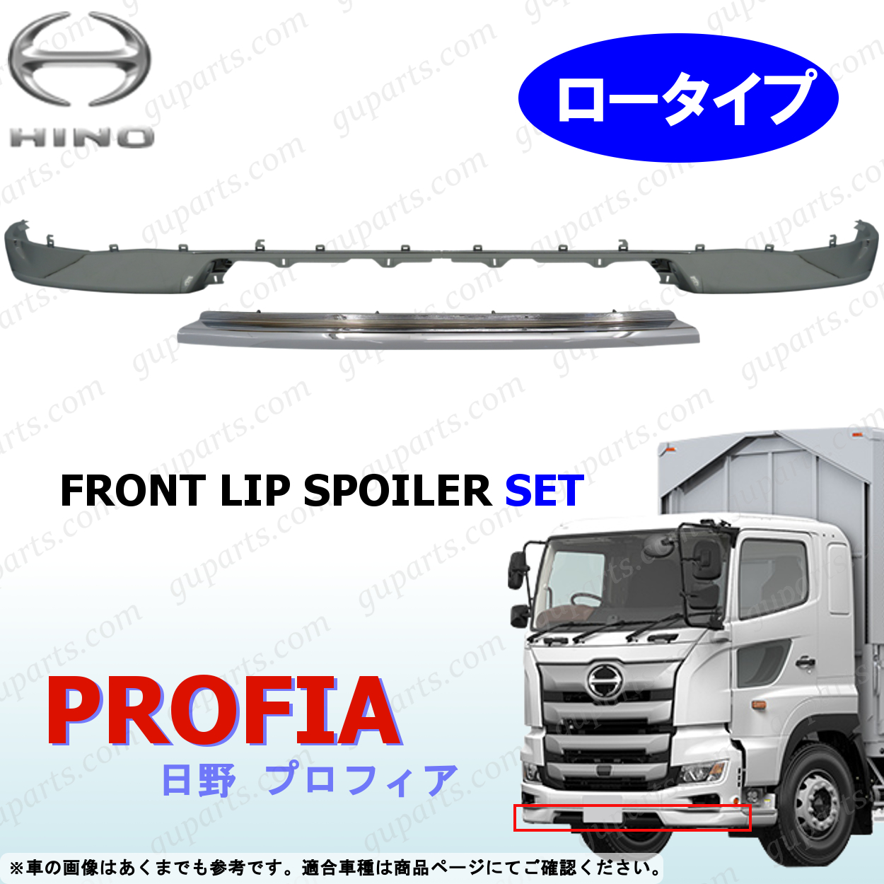 日野 17 プロフィア H29〜 ロータイプ フロント バンパー リップ スカート セット 3分割 エプロン アンダー ロア メッキ デコトラ