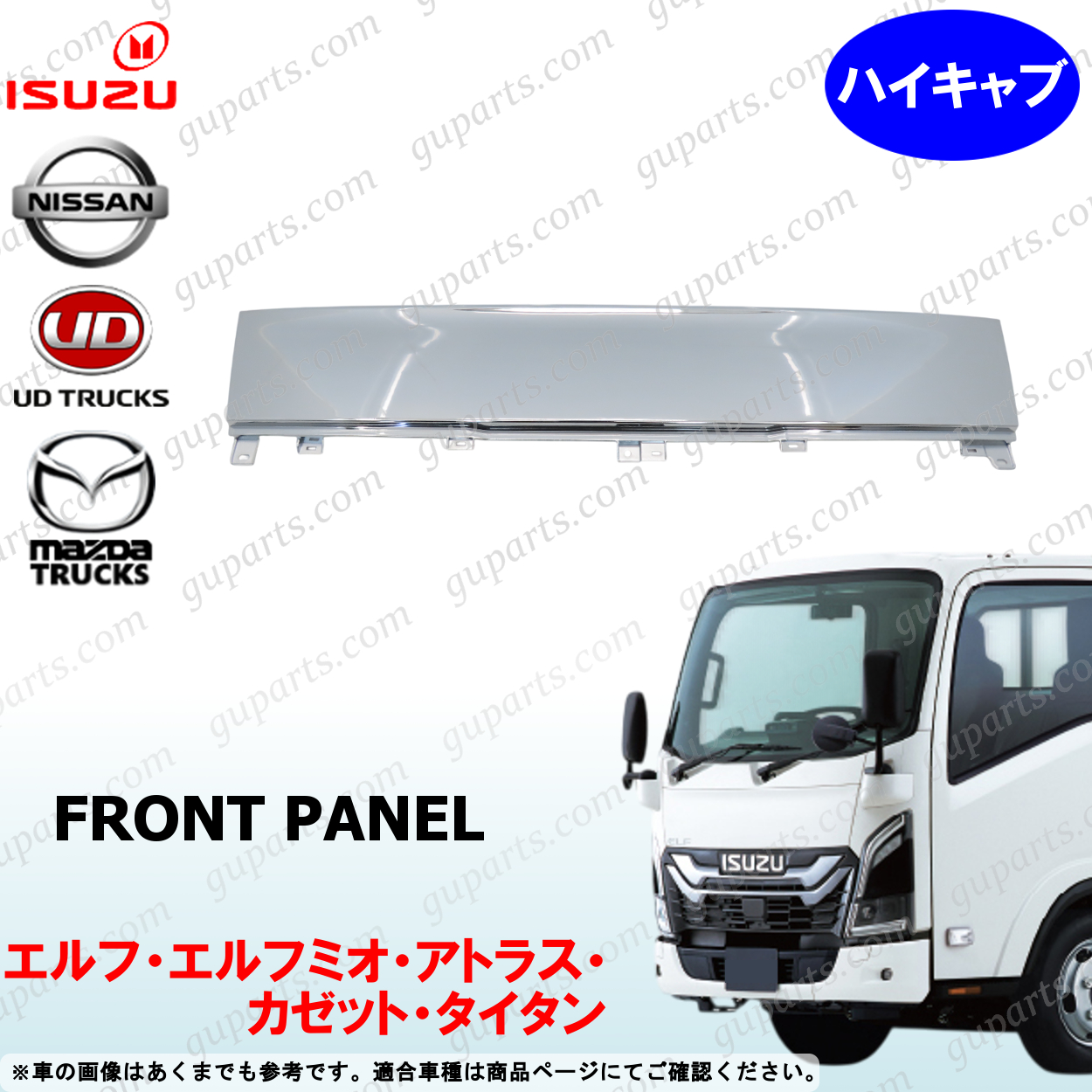 23 エルフ ハイキャブ フロント パネル 交換 プラスチック製 クロームメッキ エアロ タイタン アトラス カゼット いすゞ