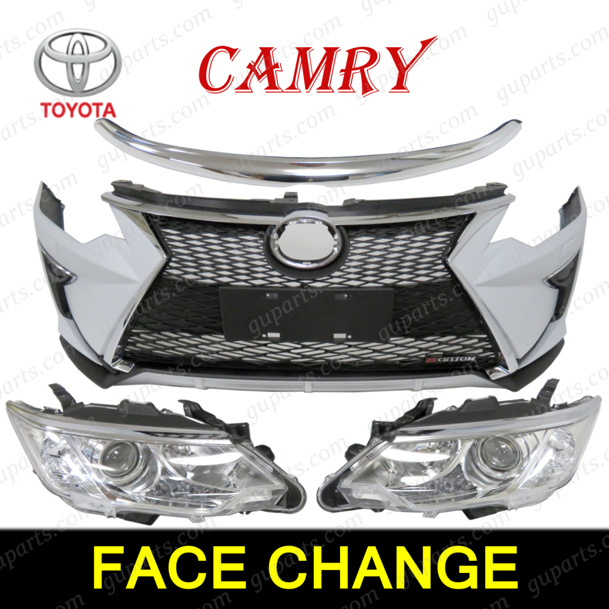 トヨタ カムリ AVV50 HV 前期 → 後期 LEXUS フェイスチェンジ フロント バンパー グリル フォグ ヘッド ライト メッキ トリム エアロ