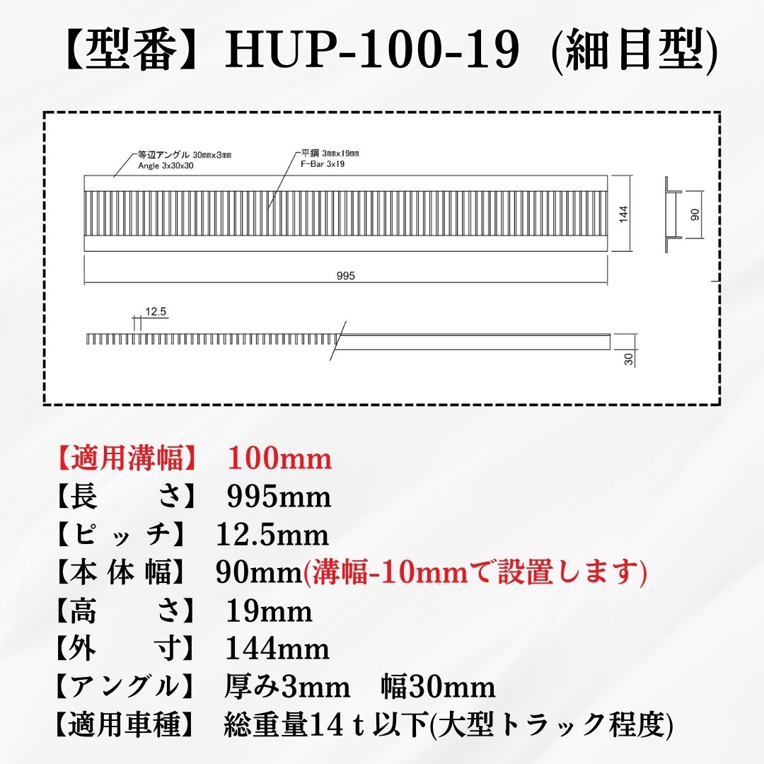 グレーチング U字溝 HUP-100-19 溝幅100mm用 大型トラック荷重 規格 T-14 溝 蓋 側溝 細目 法山本店