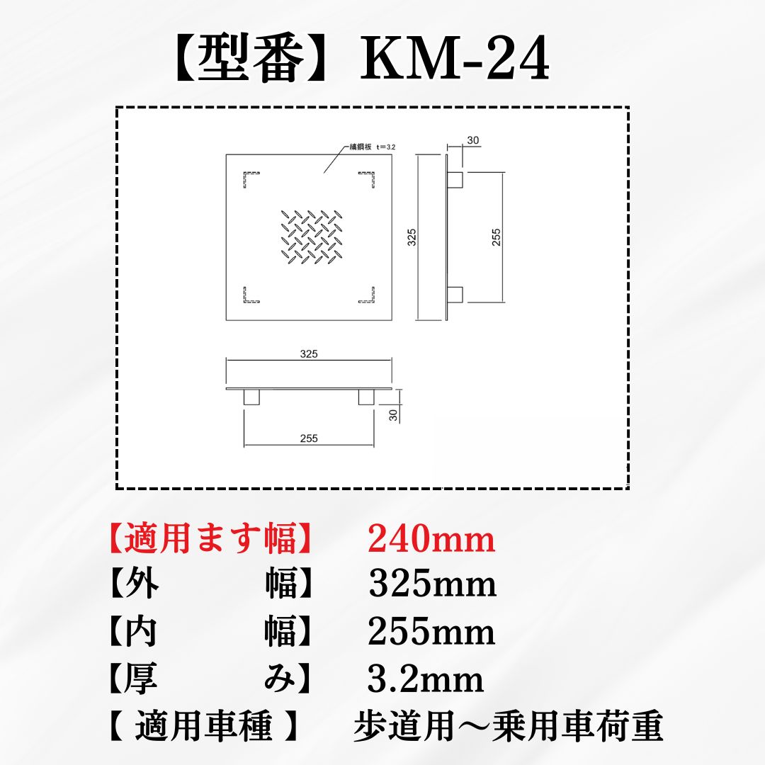 縞鋼板 桝蓋 ます KM-24 溝幅240mm用 内幅255mm 外幅325mm 軽荷重 規格 縞板 鉄板 蓋 法山本店