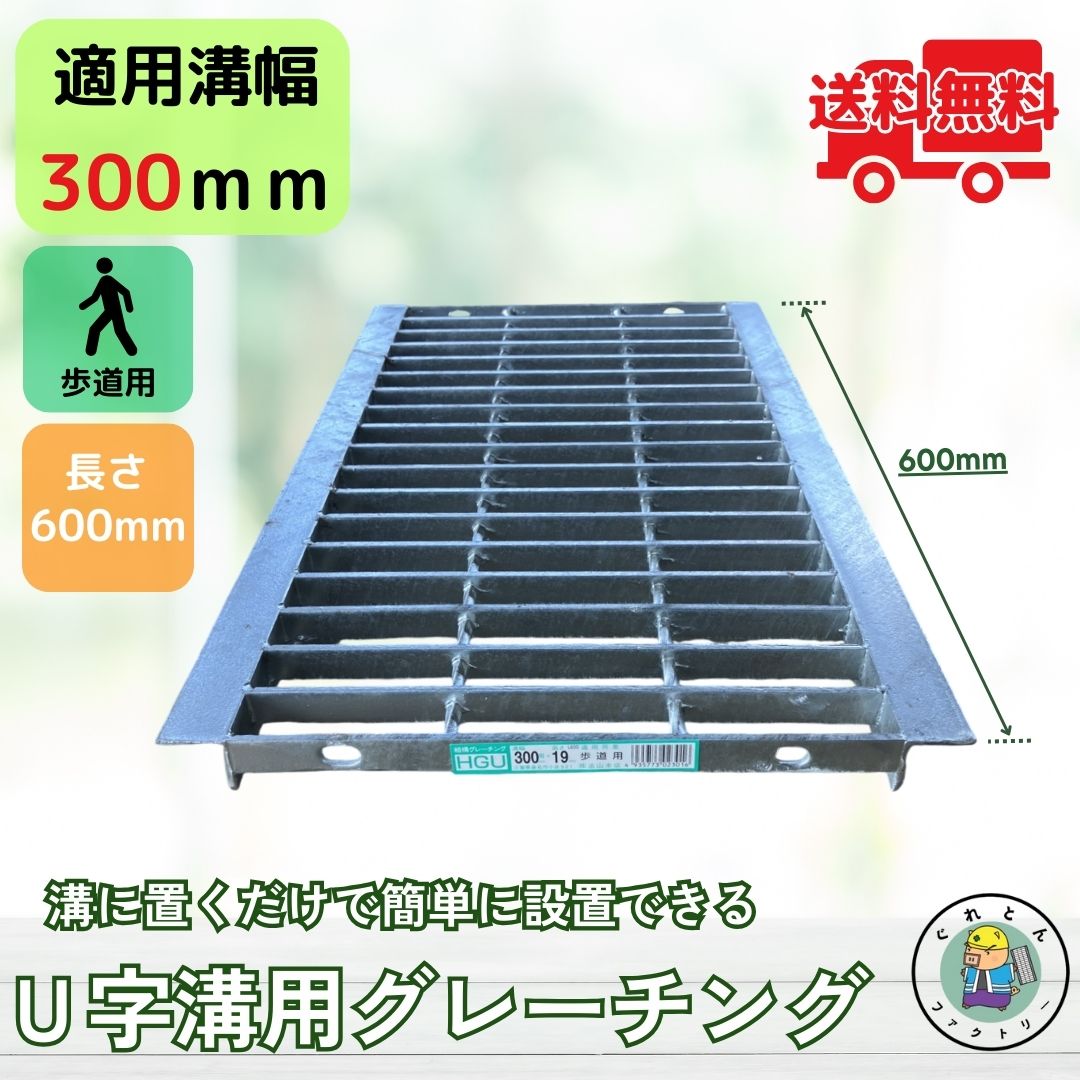 【業者様からのリピート多数!】 グレーチング U字溝 HGU-300-19L600 溝幅300mm用 歩道用荷重 規格 溝 蓋 側溝 普及型 並目 L600 法山本店