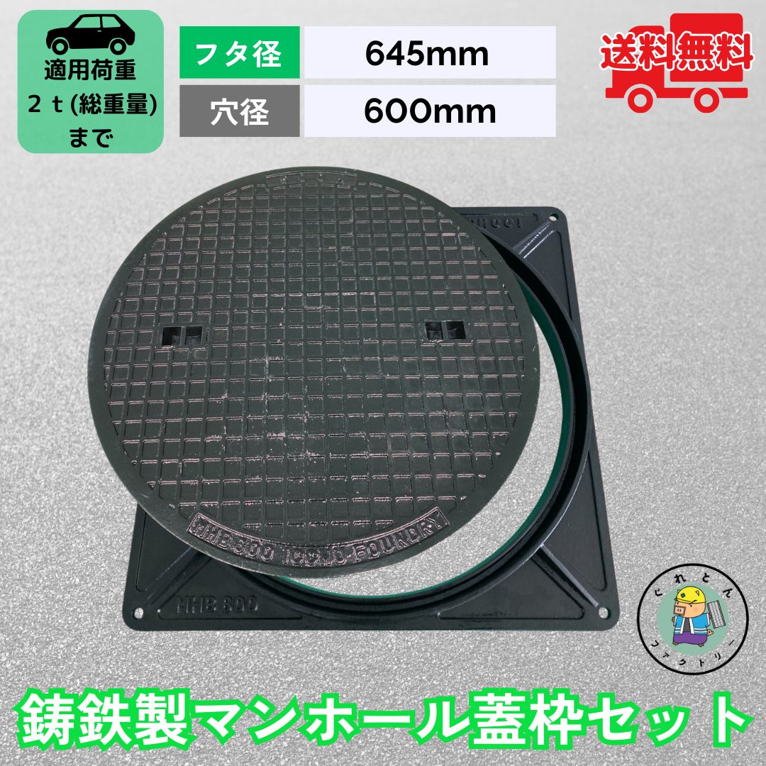 マンホール 鋳鉄製 MK-1-600 蓋枠セット フタ外径645mm 穴径600mm T-2 乗用車荷重 規格 普及型 法山本店