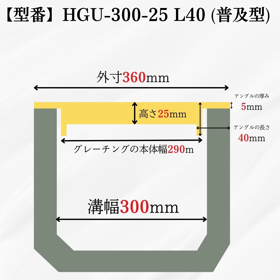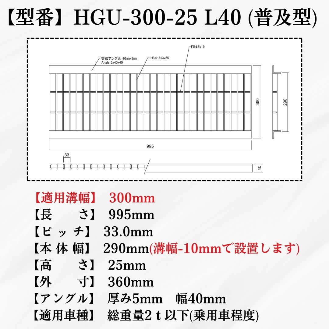 【商品名 U字溝用グレーチング(普及型)HGU-300-25L40】