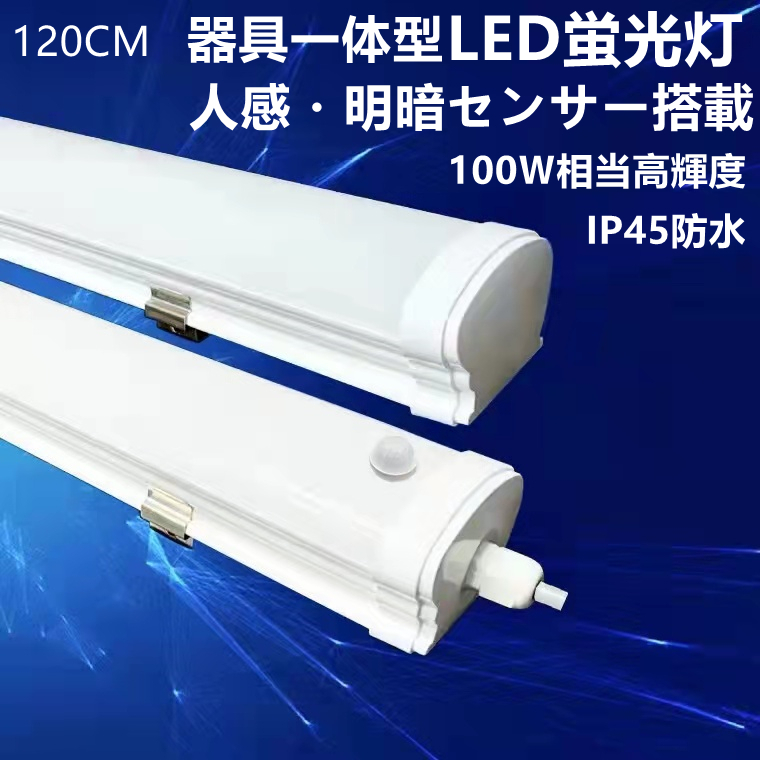 人感センサー 明暗センサー付き ホワイト LED蛍光灯 器具一体型 高輝度 1本入り 40w型 4800LM 昼光色 120cm 昼白 白 防水 自動点灯センサー付き