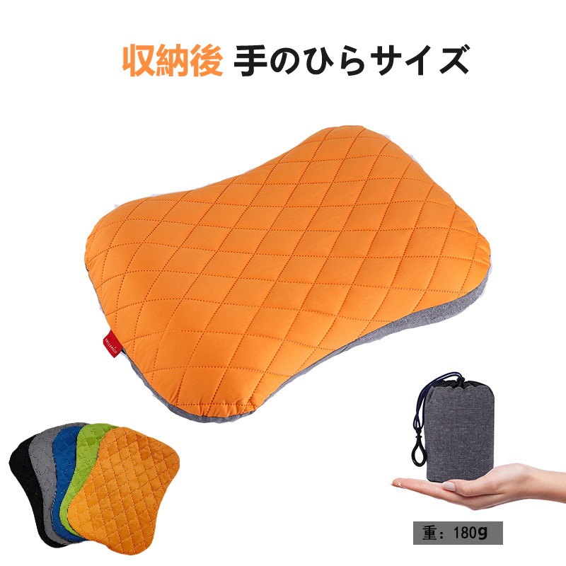 <br>【アップグレード版】エアーピロー はアップグレードした弾性複合生地の高品質TPU素材を採用し、高い気密性を保ち、耐久性に優れています<br>【多用途 便利グッズ】アウトドア キャンプ 登山 車中泊 はもちろん 在宅ワーク時 椅子の腰当て サポート クッション としても活用でき、トラベル 旅行 ドライブ オフィスでの休憩 バックパック 等様々なシーンにご利用可能<br>【コンパクト 超軽量】重量はわずか180g 収納時手のひらサイズで収納でき、荷物がコンパクトになり、スペースを有効利用でき、より多くのものを収納できます<br>【シンプルな使い方】バルブに3-5回 息を吹き込むだけで膨らみます。高さの調整は入れる空気量でコントロールできます。また固