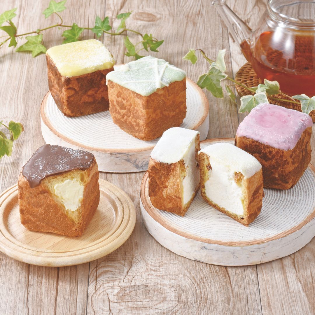 パイシュー生地を四角く焼き上げた見た目も楽しいシュークリームの5個セットです。