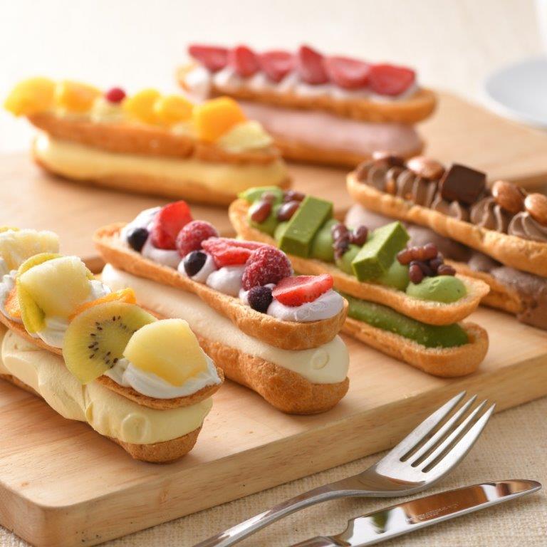 濃厚なアイスクリームを専門店ならではのしっとりとしたシュー皮で包み、季節のフルーツやカラフルなクリームで飾りつけました。まるでデコレーションケーキのような豪華なシューアイスです。