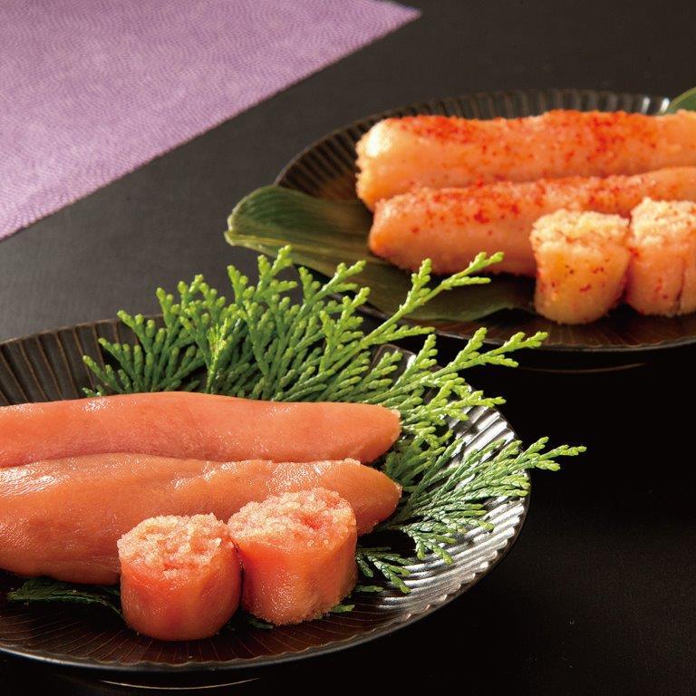 北海道胆振沖で獲れたスケソウダラの卵を鮮度の高いまま漬け込みました。キャリア40年の職人がひとつひとつ厳選した北海道産無着色のたらこと明太子のセットです