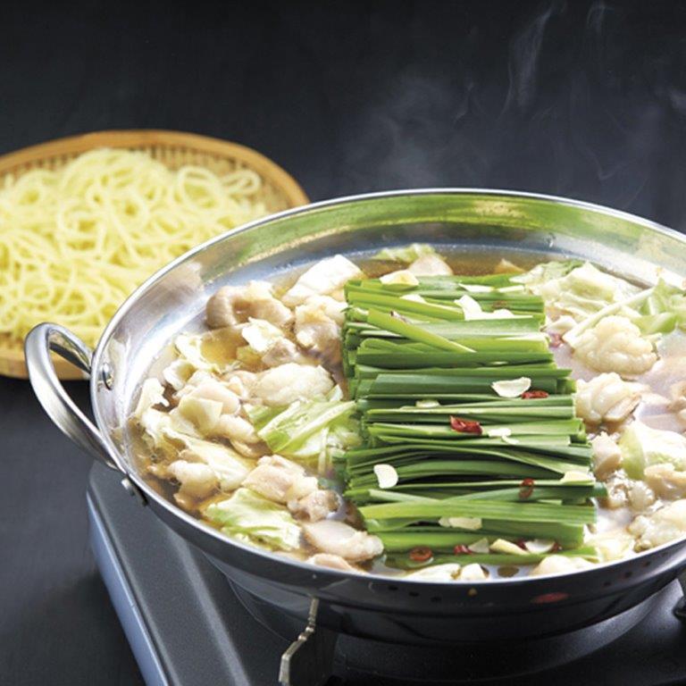 博多を代表する鍋料理のひとつ「もつ鍋」。牛もつは国内産を使用。うれしい「しめ」のちゃんぽん麺付きです。