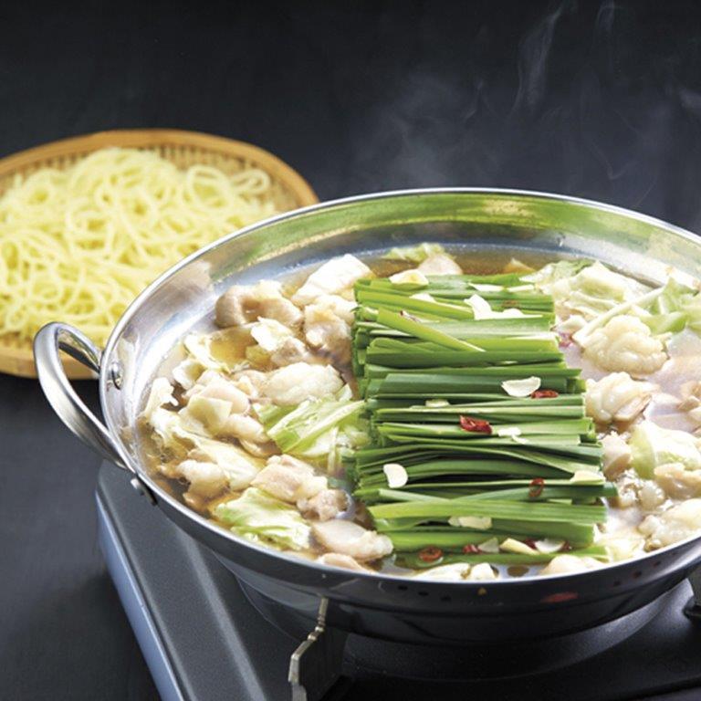 博多を代表する鍋料理のひとつ「もつ鍋」。牛もつは国内産を使用。うれしい「しめ」のちゃんぽん麺付きです。