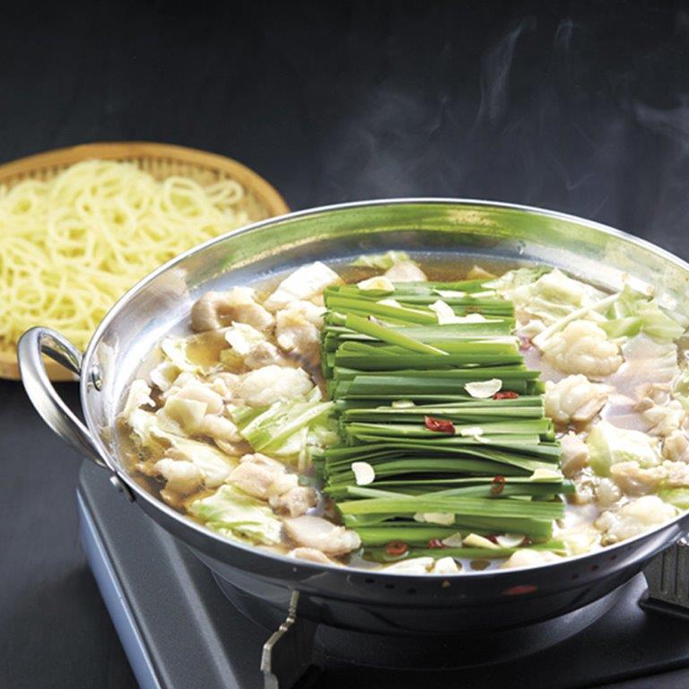 博多を代表する鍋料理のひとつ「もつ鍋」。牛もつは国内産を使用。うれしい「しめ」のちゃんぽん麺付きです。