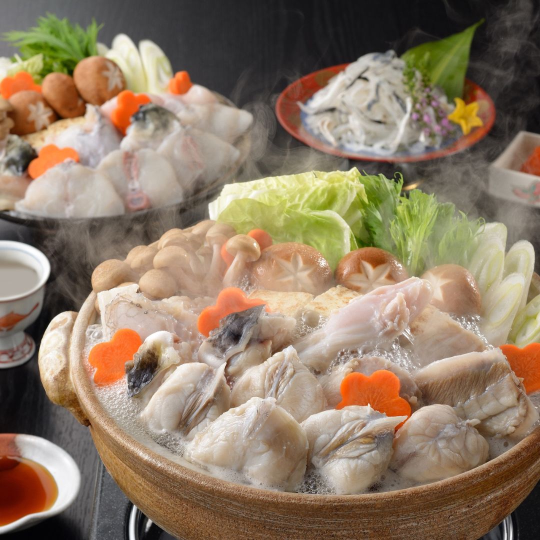 とらふぐちり(切身、アラ)300g×2、とらふぐ皮60g、ふく醤油30ml×4、もみじおろし10g×4