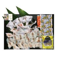 ふくちり(マフグ切身・トラフグアラ 各450g)900g、ひれ酒用ヒレ5枚、ポン酢35g×5、モミジオロシ16g