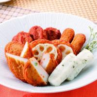 原材料名:魚肉、具材(れんこん、ごぼう、人参、にら、玉葱、しそ)、発酵調味料、卵白、砂糖、澱粉、小麦蛋白、食塩、ブドウ糖、魚介エキス、焼酎、黒砂糖、地酒、食用菜種油、加工澱粉(小麦粉含む)、調味料(アミノ酸等)、保存料(ソルビン酸)