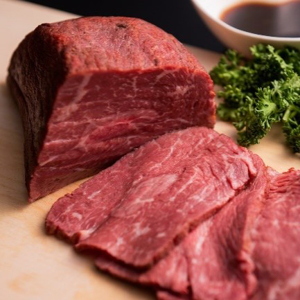 鹿児島県産黒毛和牛の未経産A4ランクの黒毛姫牛をじっくりローストしたローストビーフ。解凍してお好きな厚さにカットしてそのままお召し上がりいただけます。サラダやカルパッチョ、丼など食べ方も豊富です。