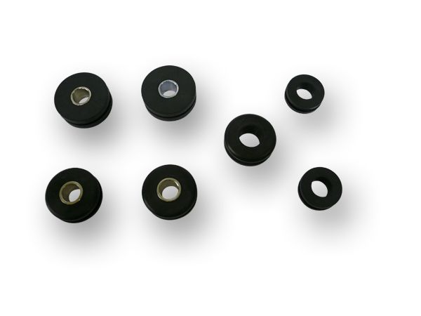 本体マウントラバー、センターハーネスホルダー用マウントラバー、セルモーターリレーマウントラバー、ワイヤーグロメット、専用特殊スティールスリーブをセットしたオールインパッケージ。