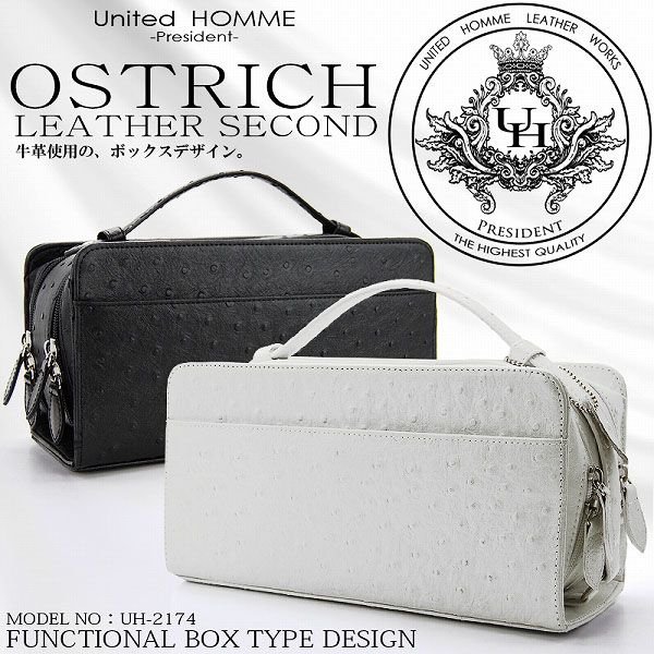 united HOMME 高級牛革オーストリッチ型押しBOXセカンドバッグ UHP-2174 2色展開 人気メンズレザーバッグ