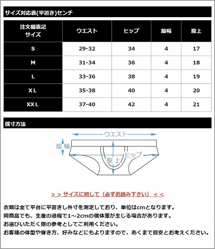 同サイズを並べると若干差がございますが、伸縮性に優れた生地ですので着用するとカラダにフィットいたします。