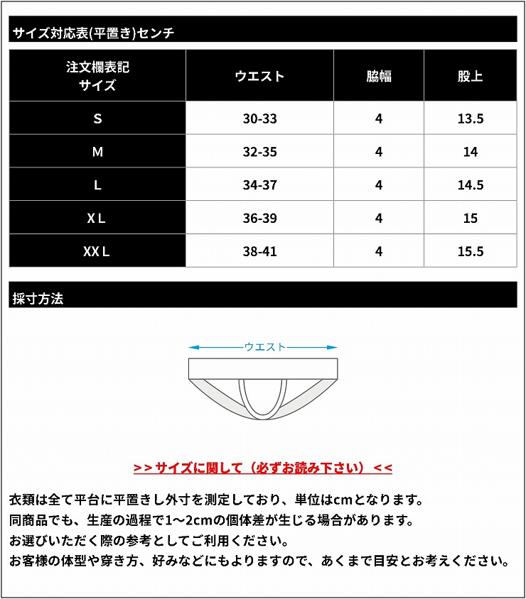 ウエストサイズ(平置きの目安)
