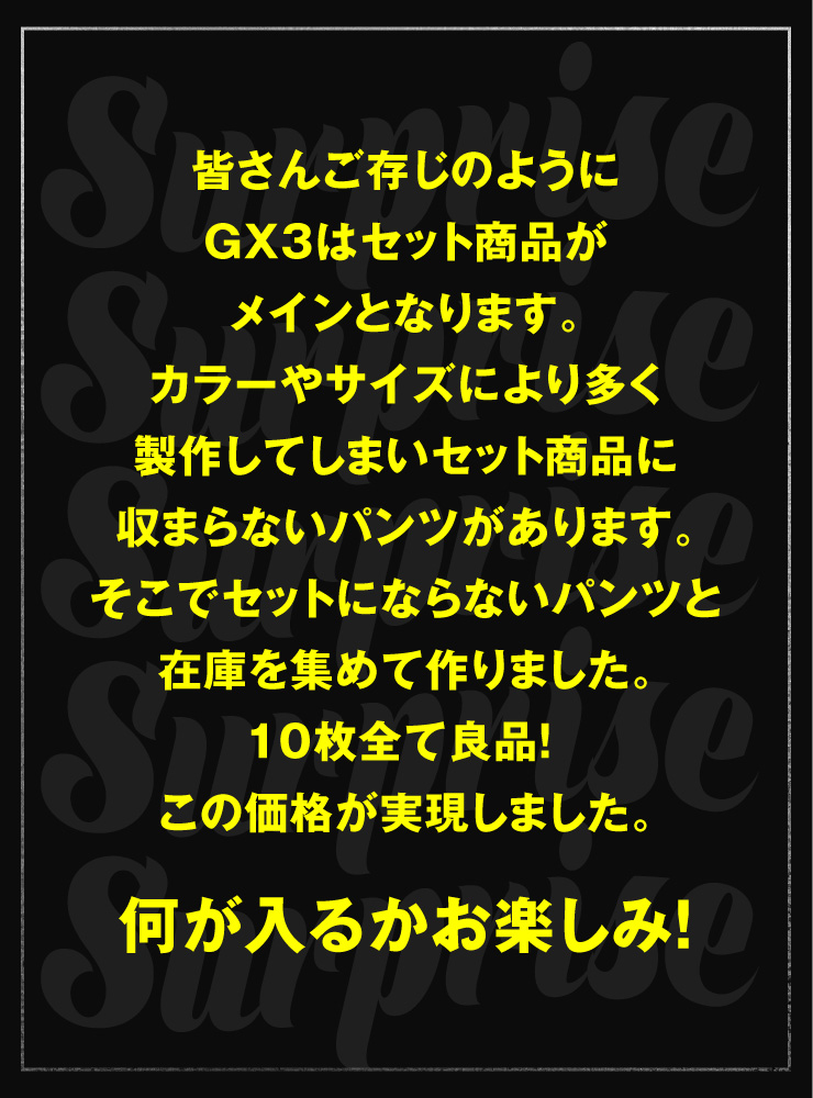 パンツがランダムに10枚入る大ボリュームな内容の福袋です。