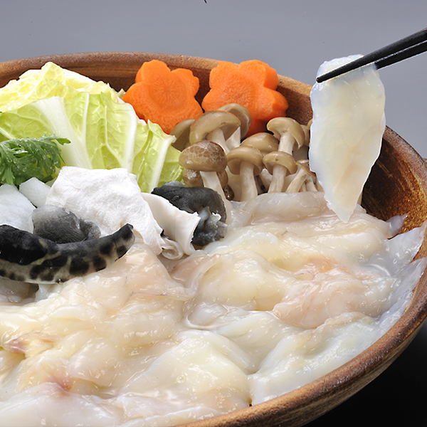 ふくのだしで造ったスープにさっとくぐらせるだけでふくの美味しさがいっそう増します。