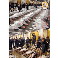 豊洲(旧 築地)市場のマグロの競り場には、毎朝数百本のマグロが並べられます。