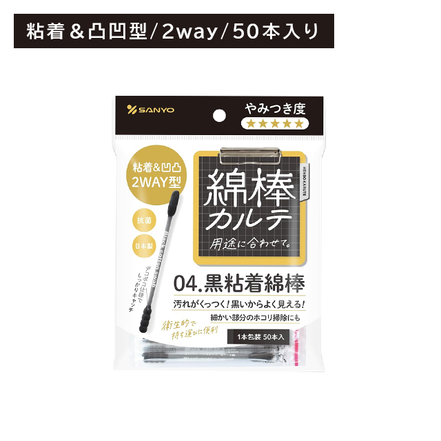 ●人気の粘着綿棒を汚れがハッキリよく見える黒色タイプにした綿棒です。