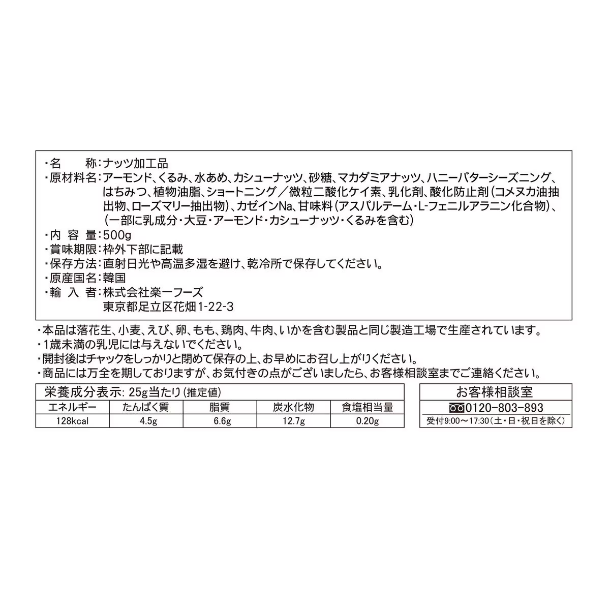 ハニーバターミックスナッツ 500g x2