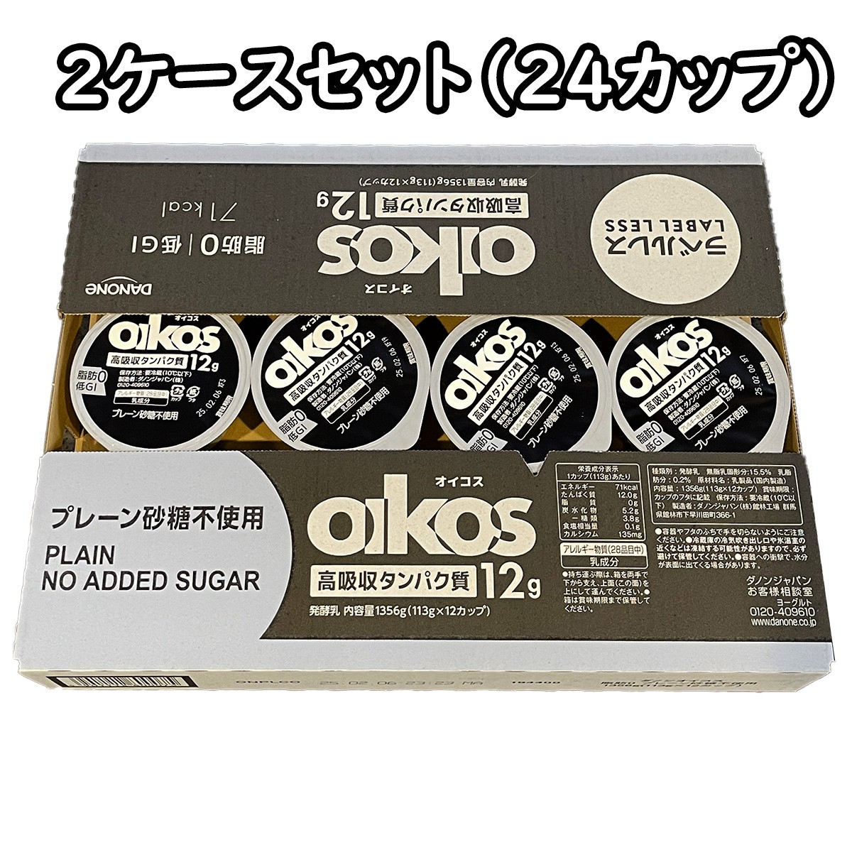 ダノン オイコス ヨーグルト マダガスカルバニラ 12個入x2ケース ラベルレス...