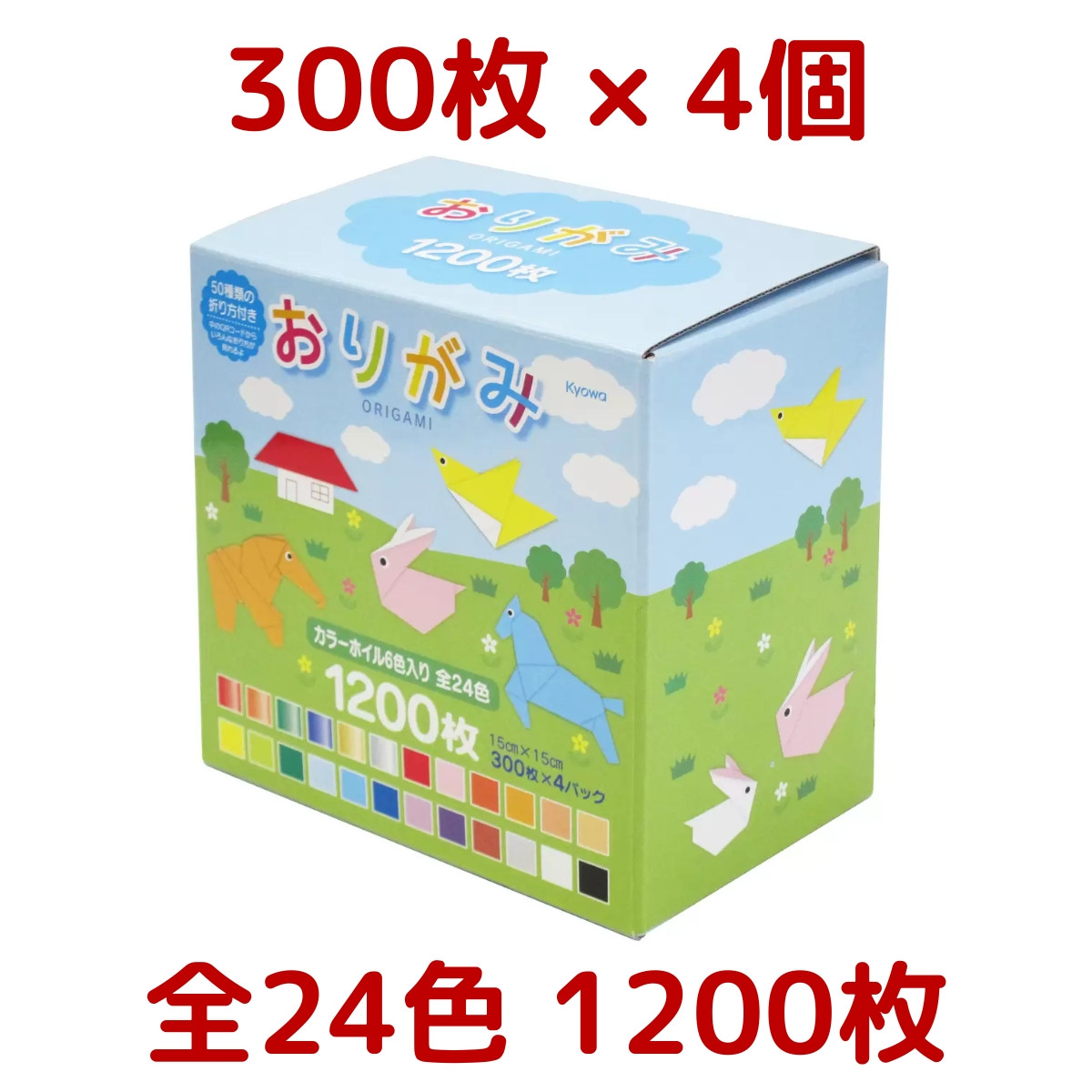 協和製紙 おりがみ 24色 1200枚 300枚×4個 カラーホイル入り 単色 小分け 箱収納 定番サイズ 5寸 15cm 15センチ 大容量 コストコ Costco