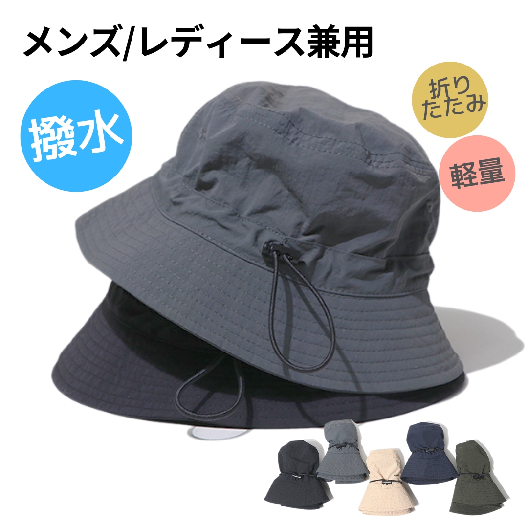 ハット メンズ レディース 夏用 バケットハット 折りたたみ 折り畳み 持ち運び 帽子 春 夏 秋 撥水 ナイロン 無地 日よけ 日除け UVカット アウトドア 帽子 軽量 脱げ防止 あご紐 あご紐付き 送料無料