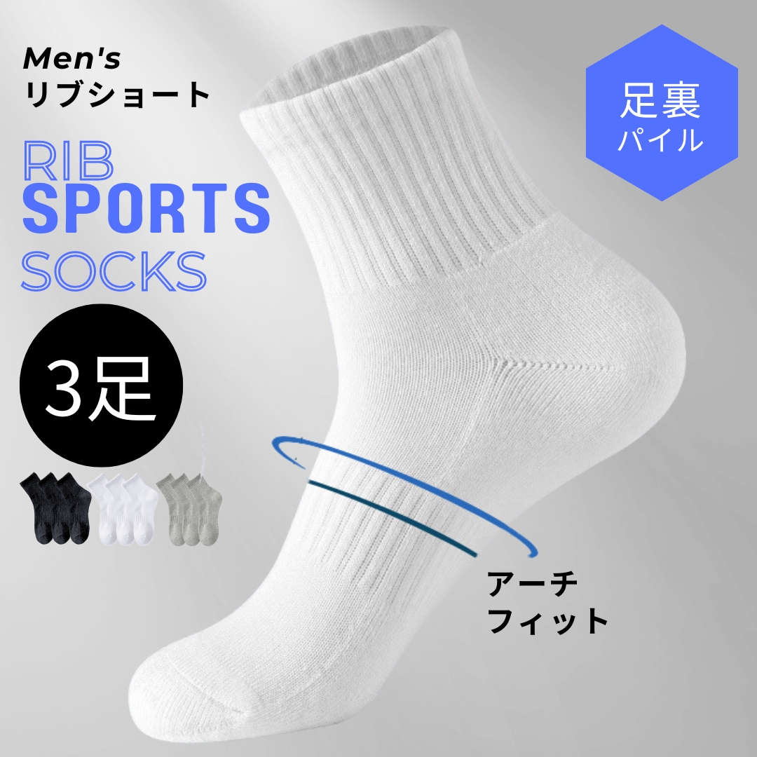 スポーツソックス メンズ 厚手 白 黒 3足 セット スポーツ靴下 靴下 スポーツ 綿 パイル ショート 足首 リブ 短め アンクル ソックス ゴルフ ランニングソックス