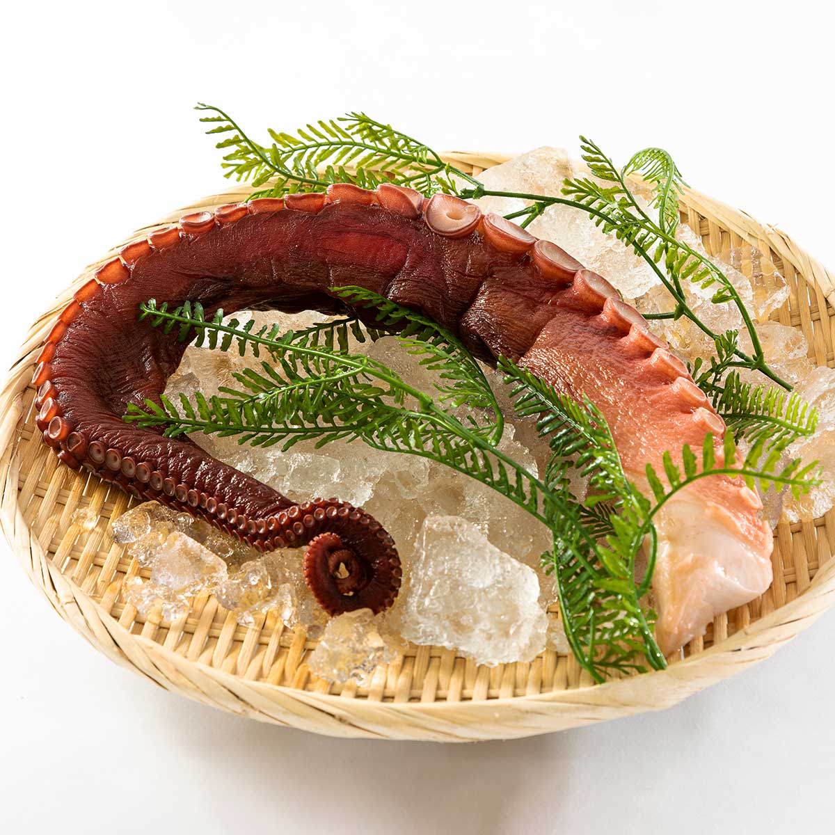 北海道オホーツク海で漁獲された北海だこを活きたまま仕入れし大釜で塩ゆで後に急速凍結で旨味を閉じ込めました。