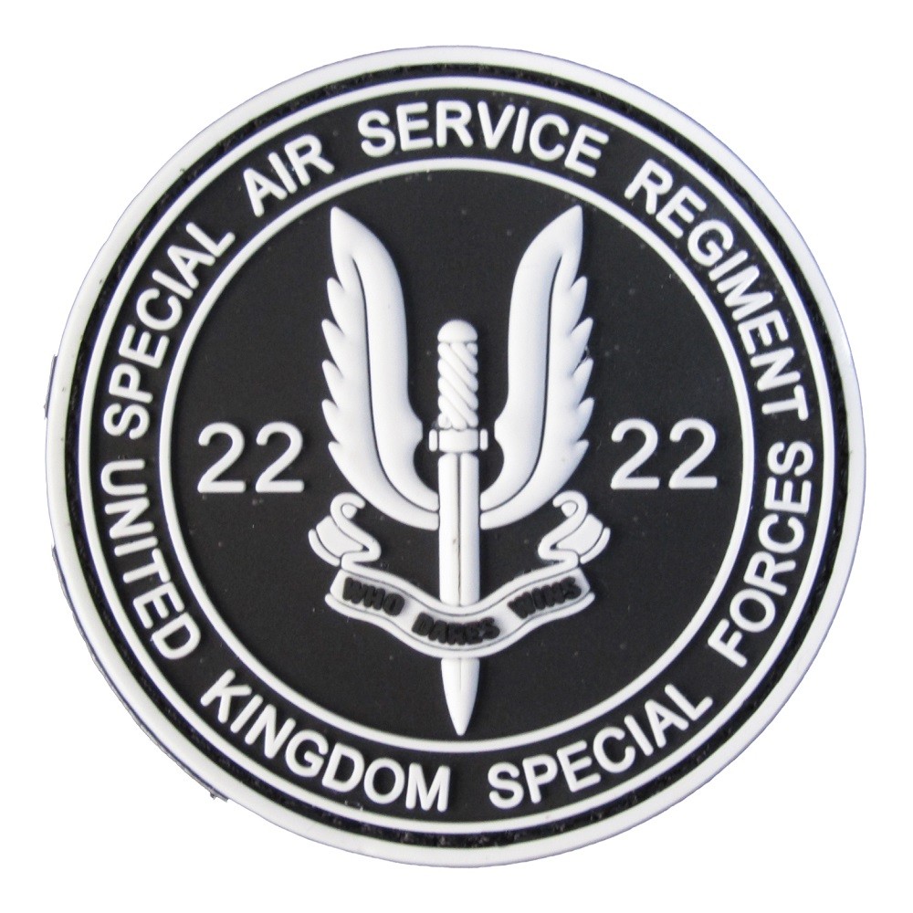 PVC ベルクロワッペン ミリタリー SAS 円 白