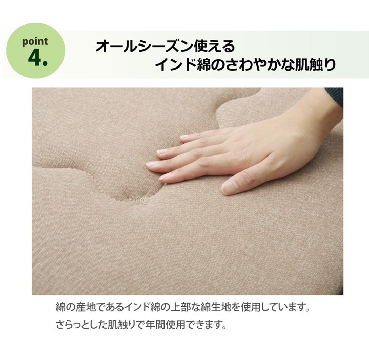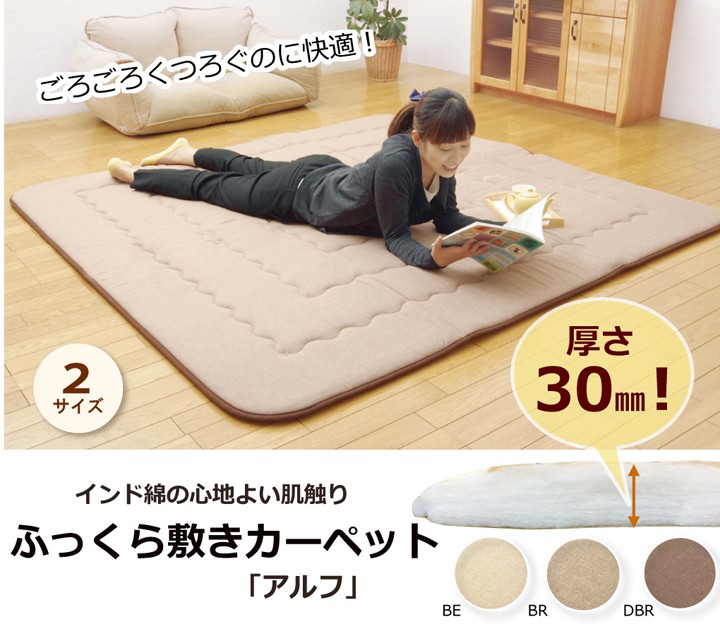 | 商品特徴 | インド綿を使用したタイプのふっくら敷きです。洋室にもぴったりなおしゃれな柄域に仕上げました。綿を使用しているので年間使える逸品です。 |