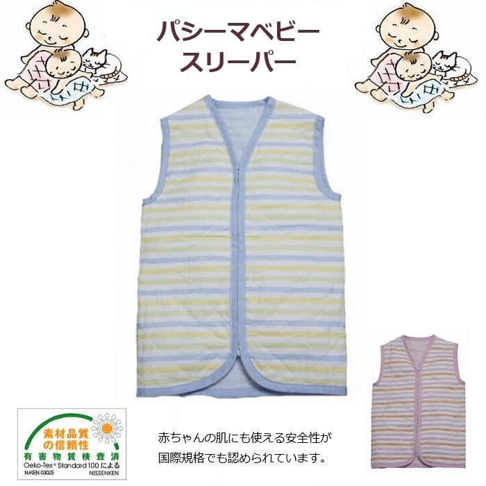 | その他商品説明 | スリーパーとは、赤ちゃんのカラダを包むベストのようなものです。「着る布団」とも言われます。 ファスナーで留めてしまうので、はだけたり、脱げることがありません。 お子様の寝相が悪くても安心、暖かく包みます。 安心してご利用いただけるよう、「エコテックス規格100」の 「製品分類(乳幼児製品)」の認証を取得した、赤ちゃんにも使える肌に優しい素材を使用しています。 |