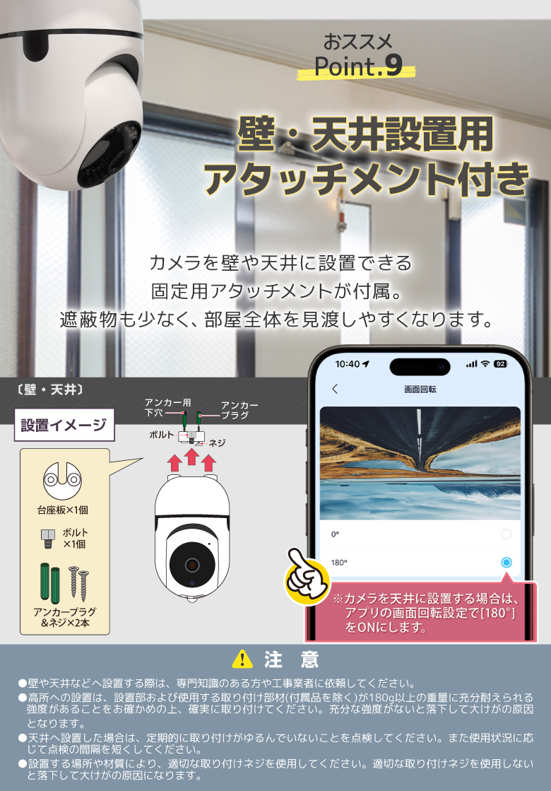| セット内容 | 本体、USBケーブル、固定用アタッチメントセット(ネジ、アンカープラグ、台座板、ボルト) |
