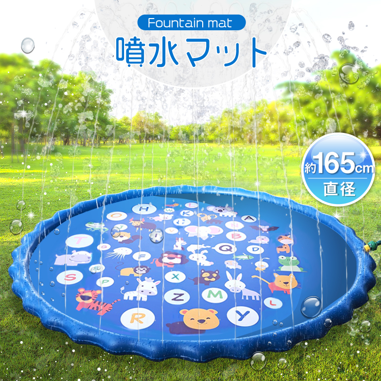 噴水マット 噴水プール ビニールプール 水遊び 水浴び 庭遊び ウォーターマット 噴水おもちゃ プールマット 水しぶき こども用 165cm ブルー かわいい 楽しい