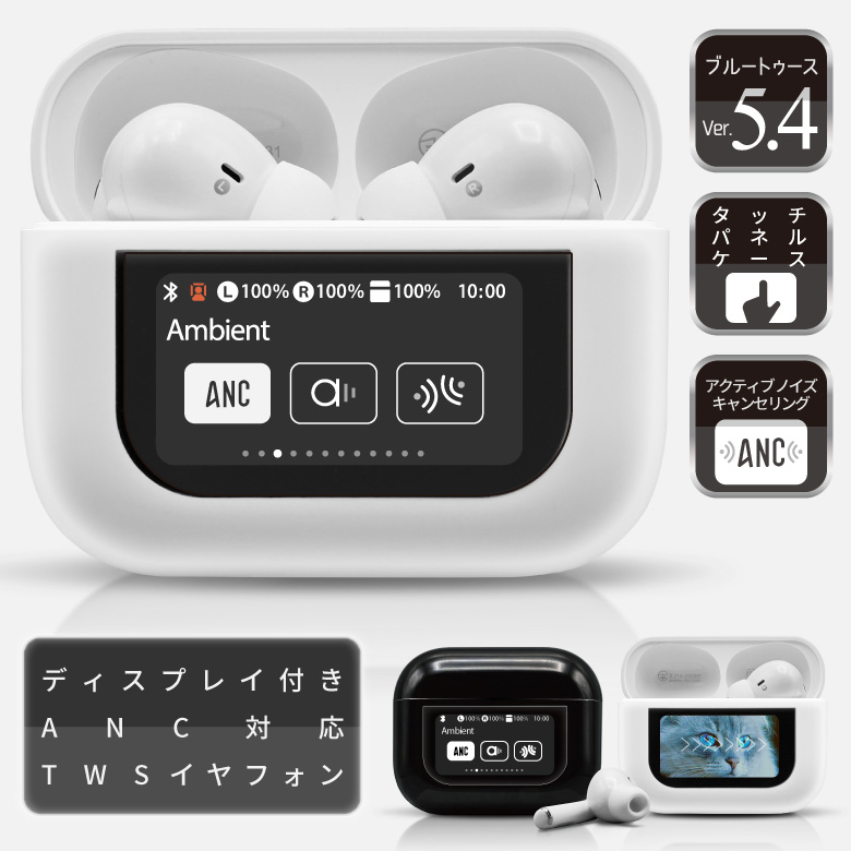 ワイヤレスイヤホン Bluetooth5.4 液晶付き タッチスクリーン タッチディスプレイ ANC ノイズキャンセリング 完全ワイヤレス iphone android