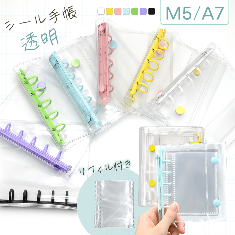 シール帳 透明手帳 リフィル10枚付き A7 M5 シール バインダー 透明 クリア はがせる シール手帳 シール帳 台紙 女の子 男の子 小学生 可愛い