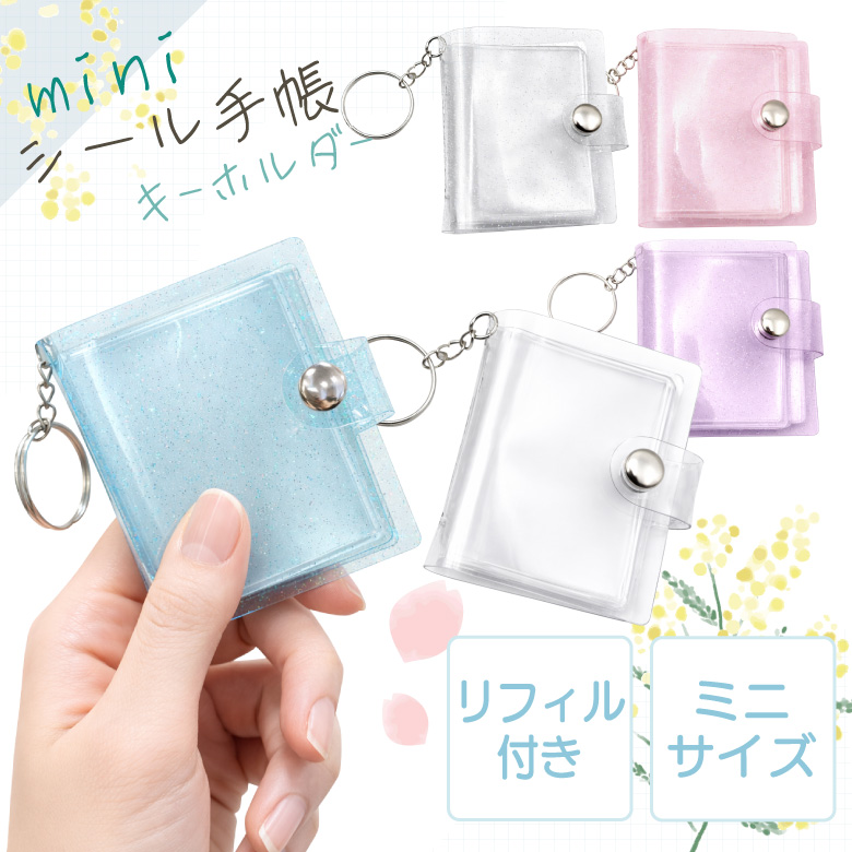 シール手帳 キーホルダー ミニキーホルダー シール帳 14枚 28面 ミニアルバム おしゃれ かわいい ラメ 透明手帳 はがせる 女の子 男の子 小学生