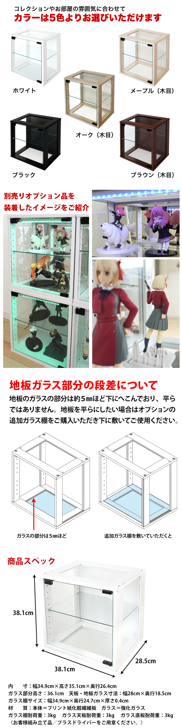 | 【超本格的なコレクションディスプレイ】 キューブボックスだからと言って侮るなかれ! ガラス棚とガラス扉が標準装備で豪華なコレクションケースができあがります。 |